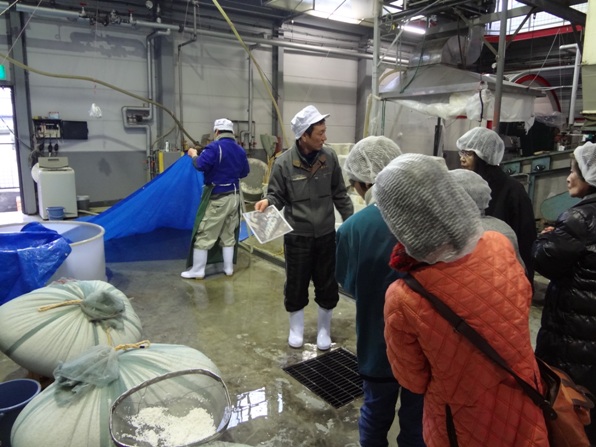 本日最後の見学場所は、嘉美心酒造です。杜氏の内倉 直さんに酒造りの工程を順番にご案内していただきました。朝で終わっている工程もありましたが、丁寧に酒造りのポイントを教えていただきました。嘉美心酒造さんは、『私達はお酒を作るうえではメーカーですが、生きるうえでは消費者です。だから家族の口に入れたくないものは作りません・・・。』というこだわりを持って甘口の非常に美味しいお酒を作られています。