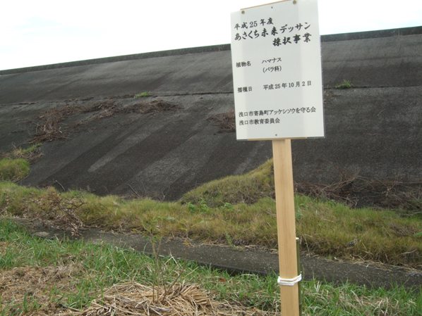 その他にも、同じく採択事業として、アッケシソウを見学に来られて方に楽しんでいただこうと、守る会によって海浜植物である「ハマユウ」「ハマナス」の植樹も行っています。大きくなり花を咲かせるのが楽しみです。