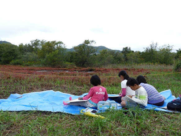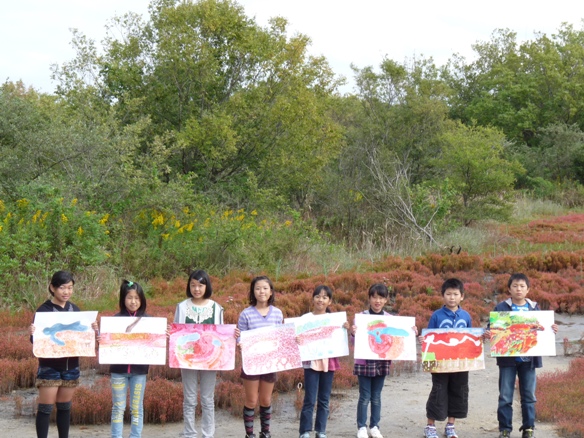 今年は残念ながら、いつもご鑑賞いただいていました、A地区(展望台周辺)が、害虫の被害にあい、枯れてしまい別の場所での写生大会となりましたが、その変わりアッケシソウを近くで見ることができ、それぞれの子ども達の感性で、よい絵が書けていました。