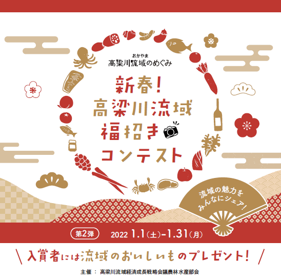 今回のテーマは、高梁川流域の新年にふさわしい「パワースポット」や「アイテム」、「ソウルフード」など、おめでたいものや縁起の良いもの、あなたオススメの「福招き」を大募集😊