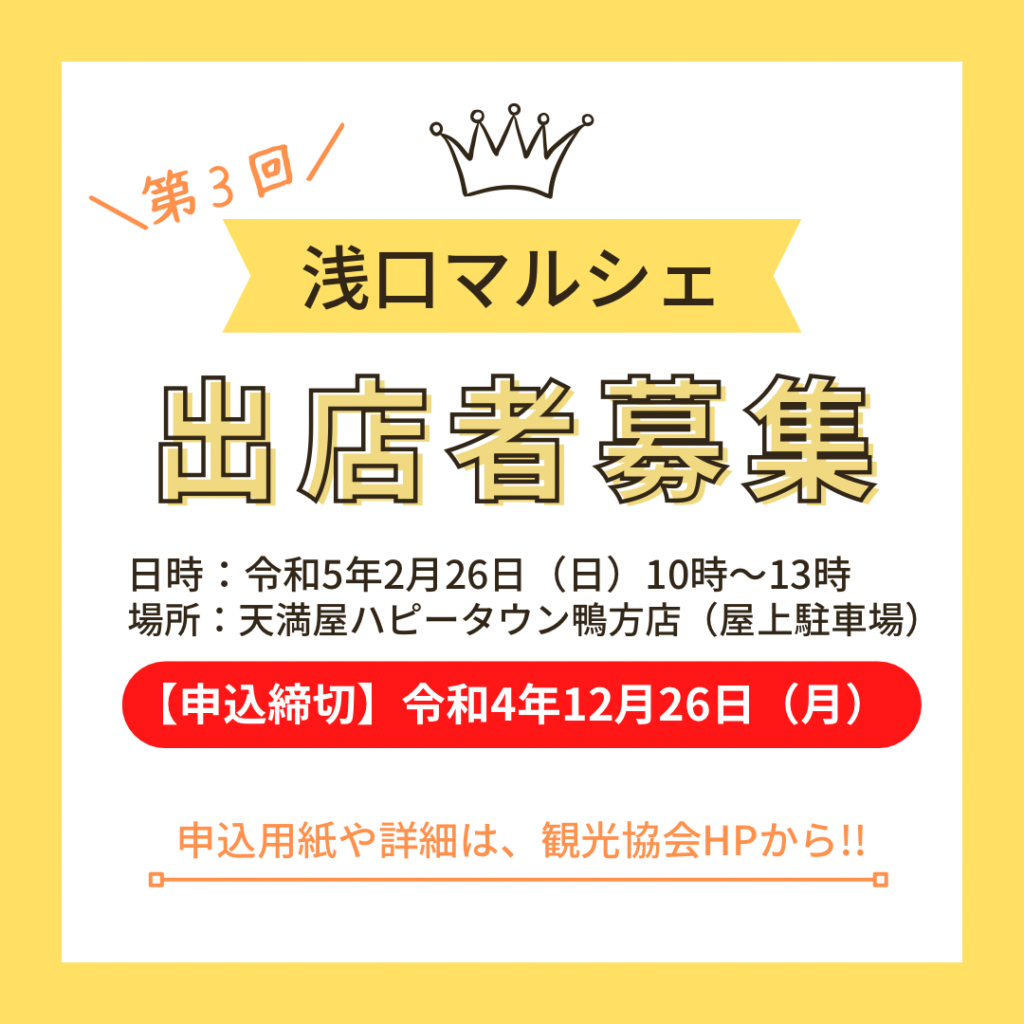 出店をご希望の事業者様は、令和4年12月26日(月)までに、必要書類を浅口市観光協会事務局までご提出ください。