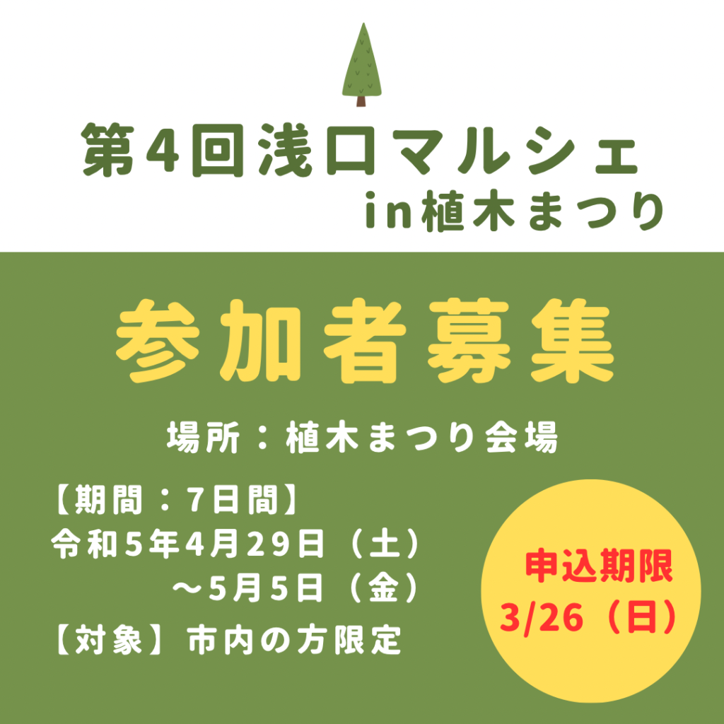 【参加者募集】第4回浅口マルシェin植木まつり(締切3/26)