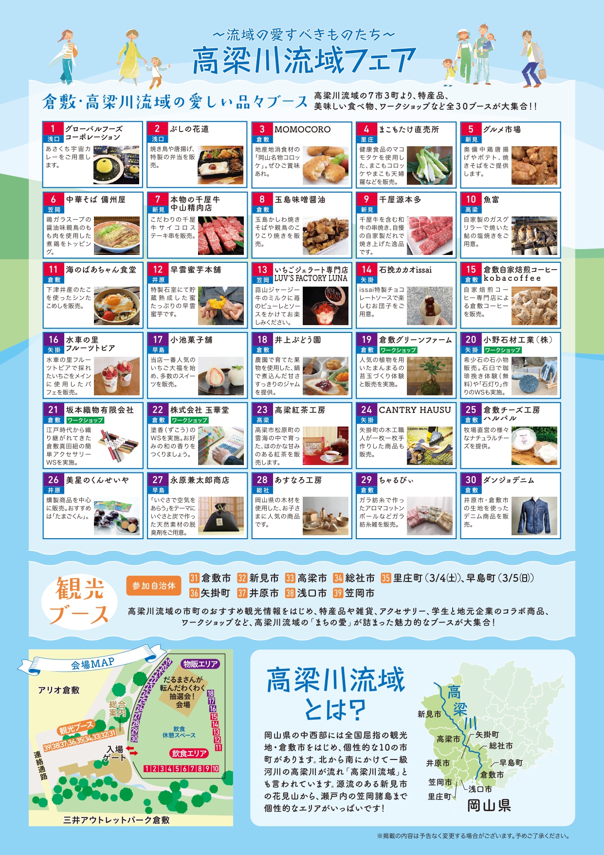 3月4、5日に、高梁川流域内の7市3町が集結し、地域の魅力を発信する「高梁川流域フェア」が開催されます☀️