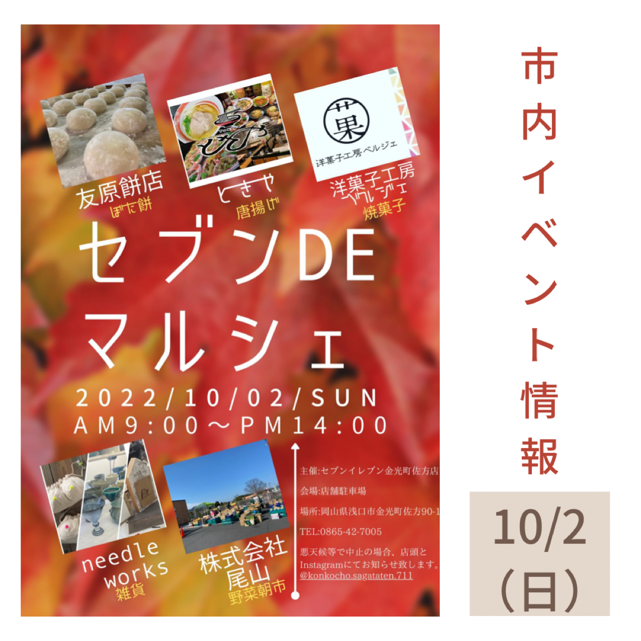 10月2日(日)セブンイレブン金光町佐方店でセブンdeマルシェが開催されるようです😊