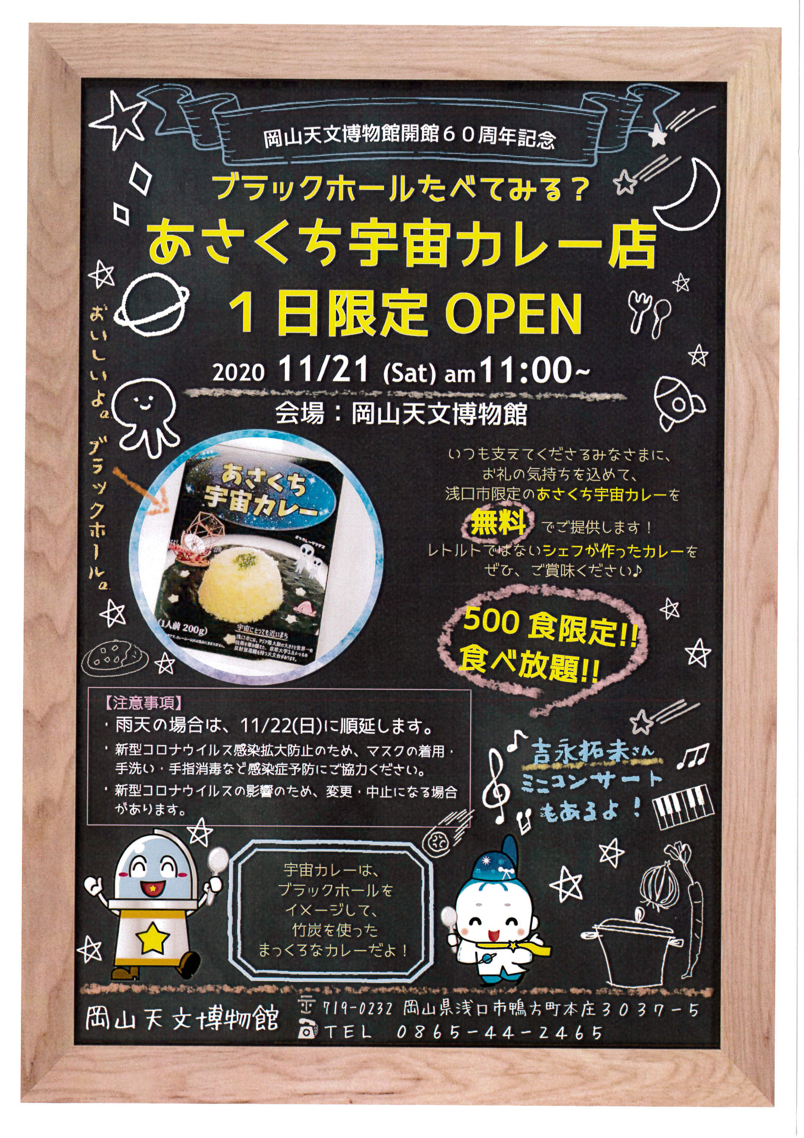 「岡山天文博物館60周年記念ブラックホール食べてみる?あさくち宇宙カレー店 1日限定OPEN」