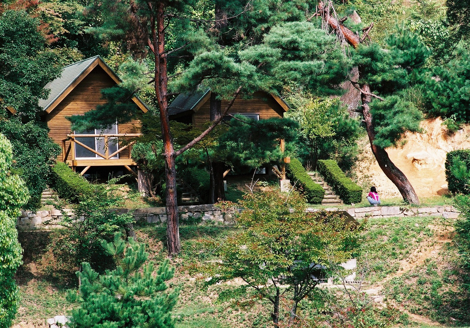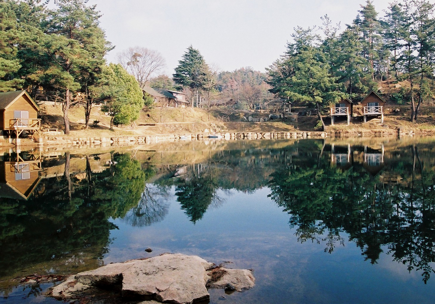 テントでのキャンプはもちろんのこと、池を囲むように配置されたバンガローでの宿泊もできます。
