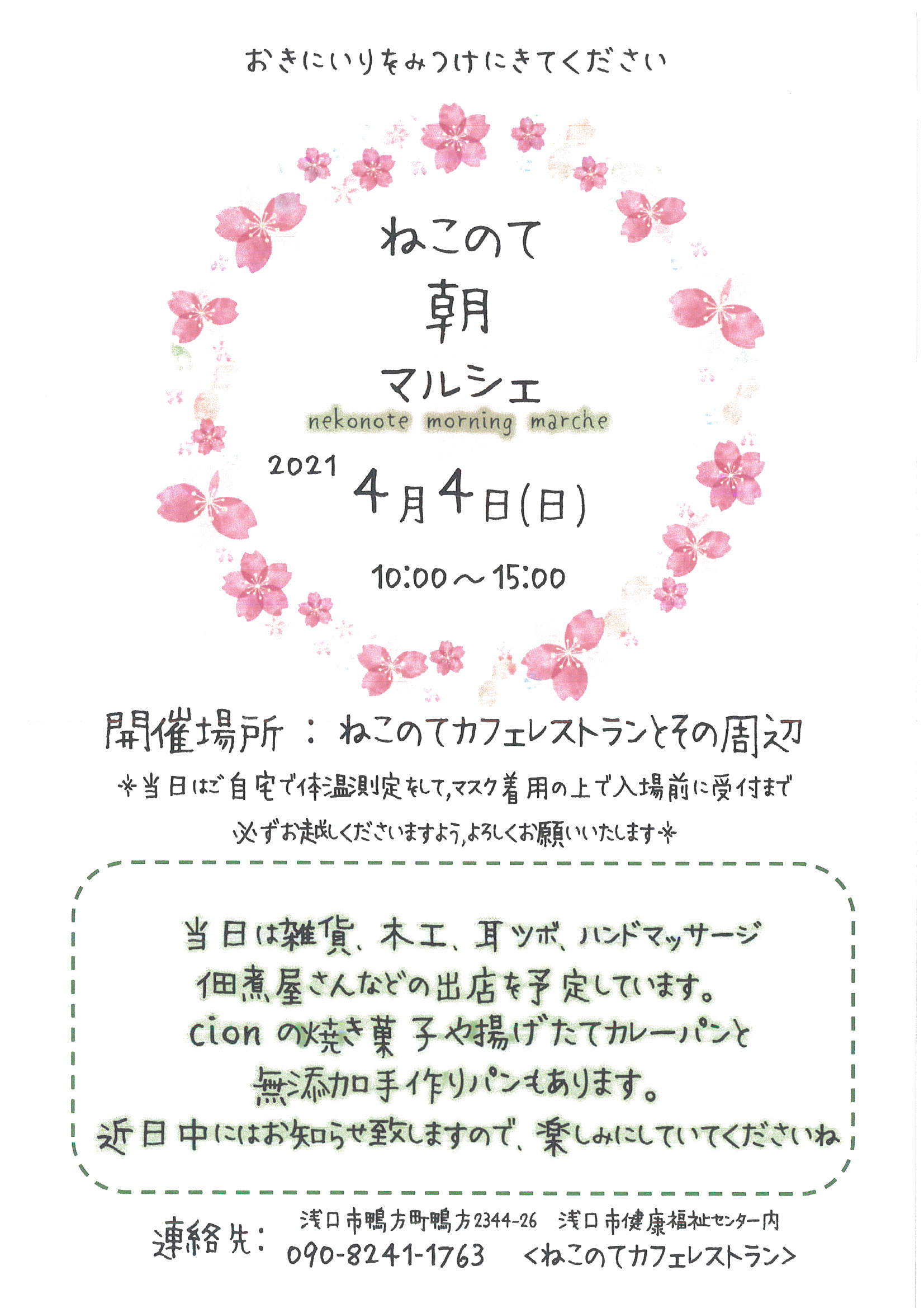 問い合わせ:ねこのてカフェレストラン 090-8241-1763