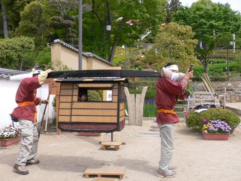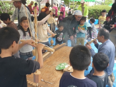 5月1日・3日〜5日にかもがた町家公園では昔の道具展&道具当てクイズと日替わり昔体験が行われ、連日親子連れで賑わいました。