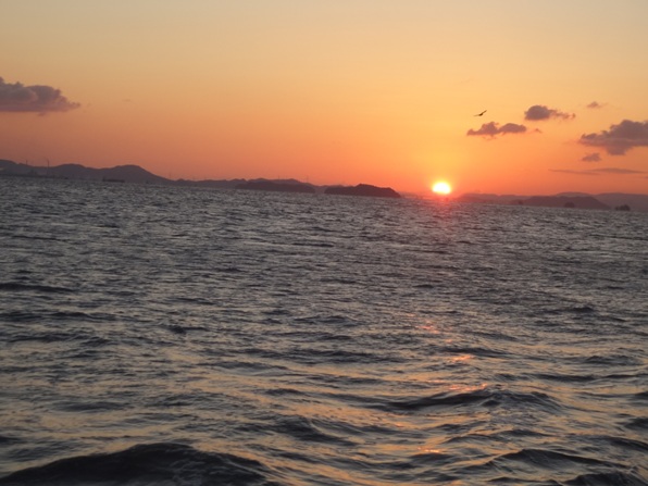 帰る途中で、朝日が上がり始めました。今日は、非常に残念でしたが、あの寒さの中、(朝4時からの時もあるようです)作業されている漁師の方を見て、このように毎日大変な作業をされているおかげで、食卓においしい牡蠣が出てきているんだなと思いました。今後、食する時はありがたく頂戴します。