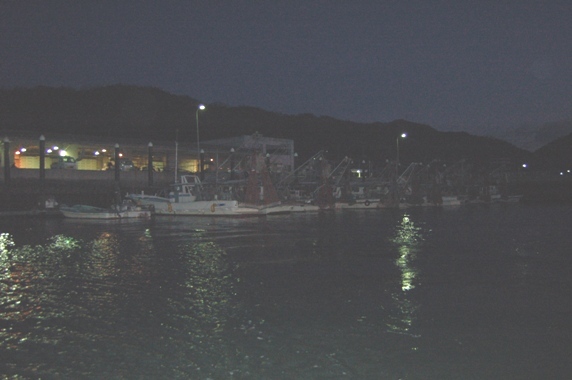 2月8日、今朝は漁船に乗って寄島牡蠣の水揚げにお邪魔させていただきました。日の出前の6時30分に、三郎島沖にある「牡蠣いかだ」を目指し寄島漁協を出発です。