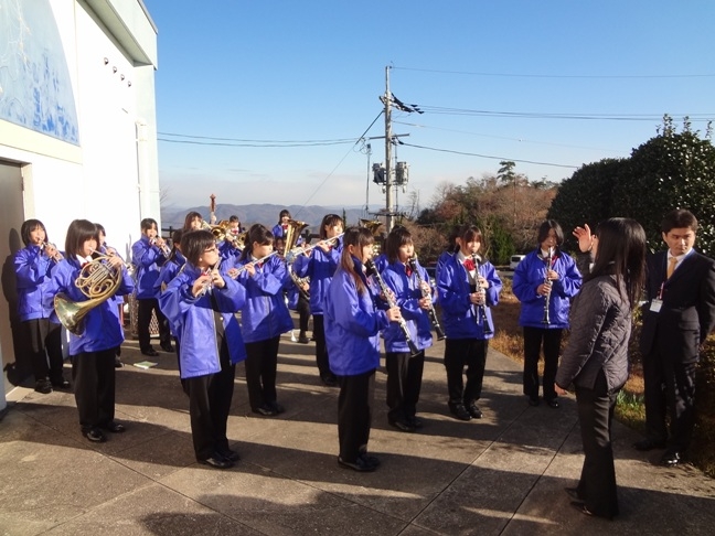 朝9時20分からの開始で寒い中ではありましたが、栗山浅口市長をはじめ、関係者、地元小学生によるテープカットや鴨方中学校吹奏楽部の演奏が行われ華やかなスタートとなしました。