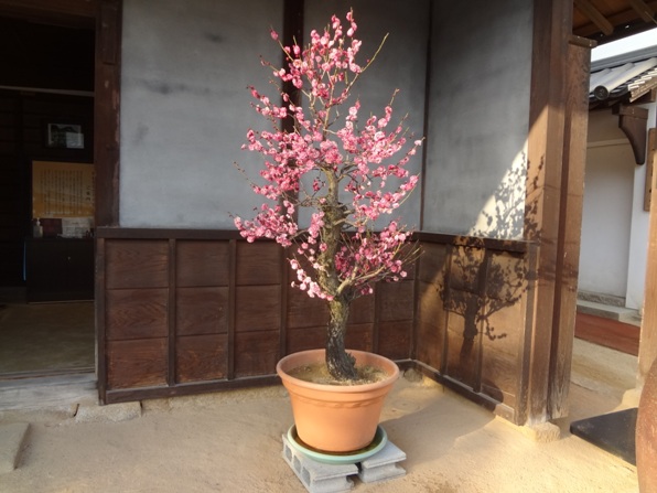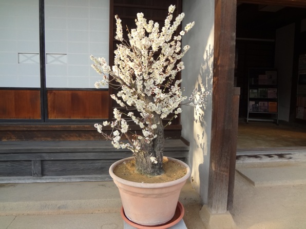 玄関先には、鴨方町文化協会の園芸部長である佐藤宗夫さんの見事な「盆梅(ぼんばい)」が飾られています。こちらも必見です。