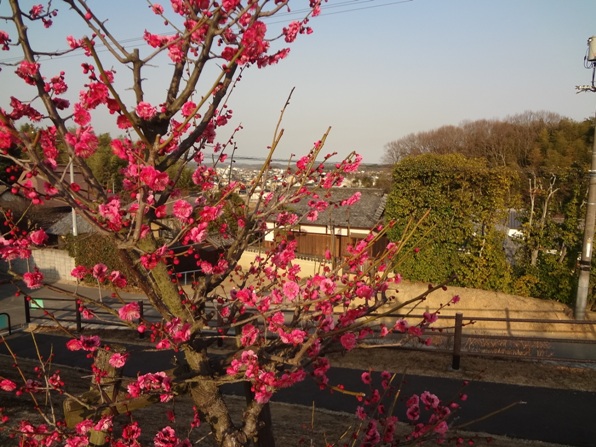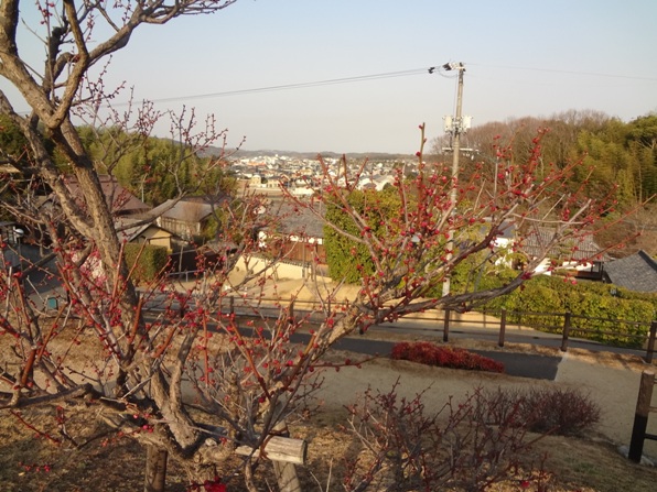 まずは、梅園「流芳の丘」を見学。昨年と比べ、入口付近の梅は早くもほぼ満開になっていました。