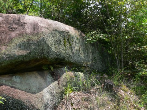 鴨山城は連郭式山城で、第4郭は大きな石材を使用した野面積(のづらづみ)の石垣でかこまれていたそうで、遊歩道や林道沿いに大きな石をたくさん見かけました。