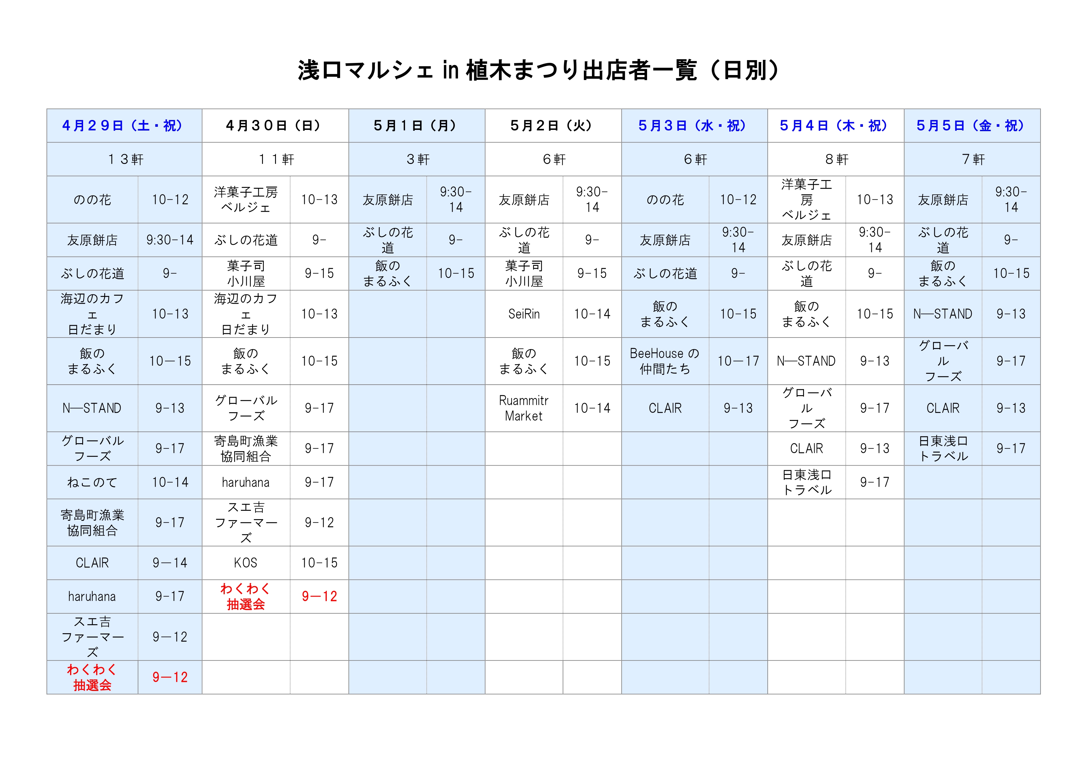 イベントはGW期間中の7日間で開催され、日によって、出店者が異なります。