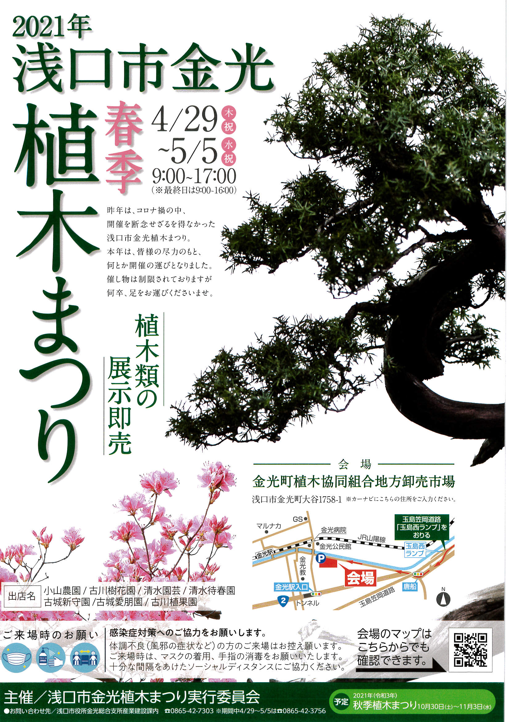 お問い合わせ先:浅口市金光植木まつり実行委員会TEL:0865-42-7303