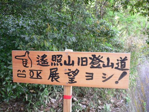 目印の加賀池につき、池の横の道を池に沿って歩くと、手作り感満載の登山道の看板を発見