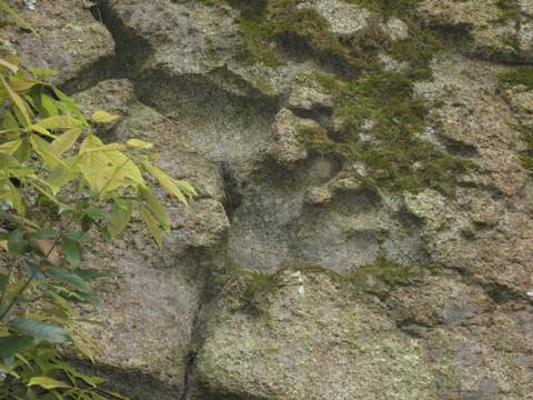 大きな岩に指の形のくぼみがあります。