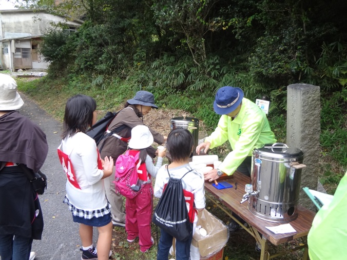 トレッキング終了後は、スタッフの方が準備して下さった「とん汁」と「おにぎり」をもらい美味しくいただきました。今日は何とか雨が上がったものの少し肌寒かったので、とん汁のあたたかさが、とてもありがたかったです。