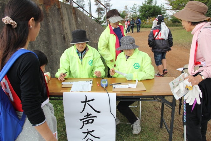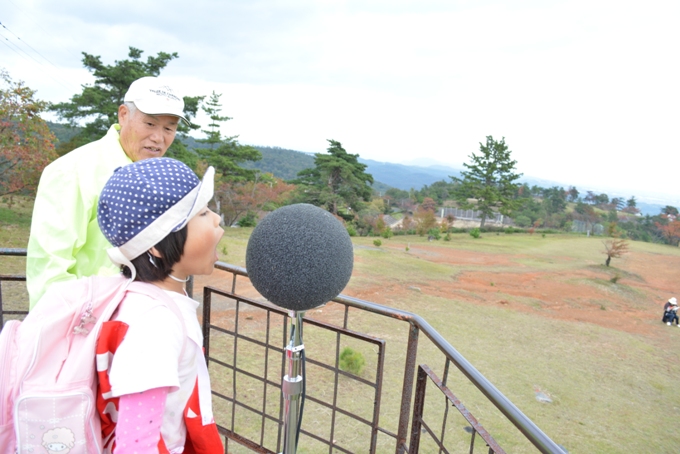 同じく「目鑑(めがね)展望台」で、大声大会も用意されていました。大きな声を出した参加者には、こちらも景品が出るそうです。私も大声を出し挑戦しましたが、あまり子ども達と大差なく、なさけない結果となりました。高い声の方が、よい数値が出るみたいです。大きな声が、静かな遙照山にこだましていました。