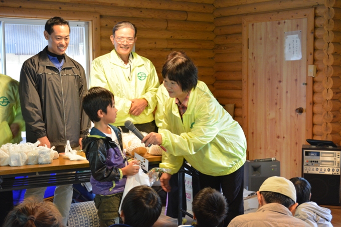 当選者には、今日のトレッキング大会の感想など簡単な質問に答えながら景品を手渡され、とても楽しそうでした。
