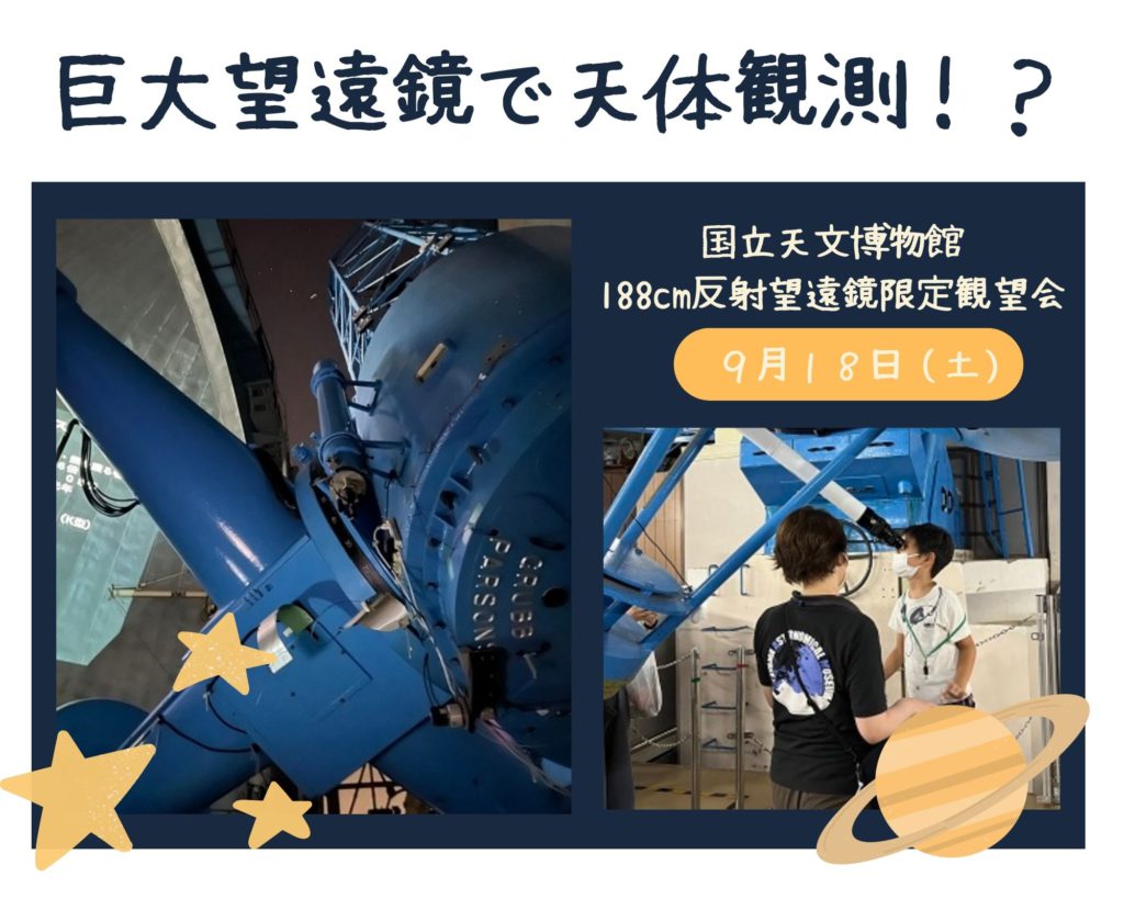 9/18 全国最大級の望遠鏡で天体観測!?~国立天文台188cm反射望遠鏡限定観望会~