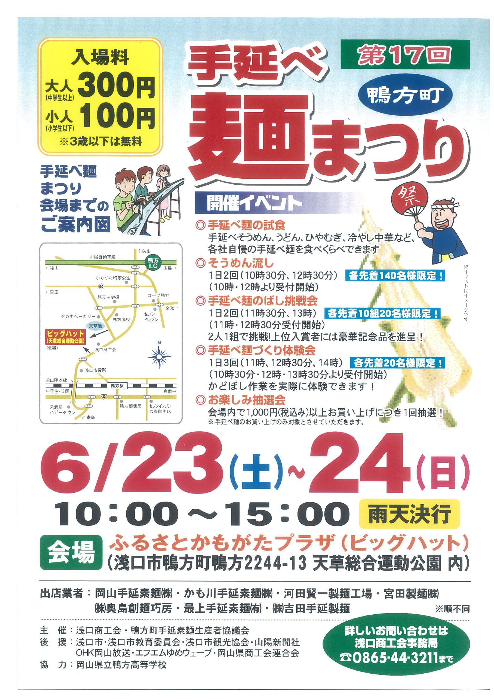 6月23日(土)、24日(日)第17回鴨方町手延べ麺まつりが開催されます。