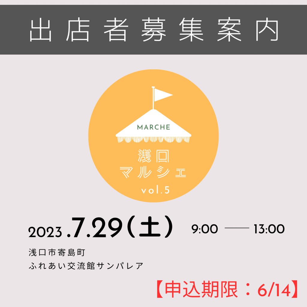 【参加者募集】第5回浅口マルシェ(申込期限:6/14)