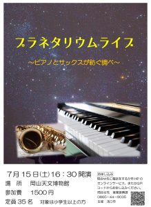ピアノとサックスのトリオが、坂本九さんの「見上げてごらん夜の星を」、宮沢賢治の「星めぐりの歌」、童謡「きらきら星」など、星や夜空にちなんだ曲をお届けします⭐😊