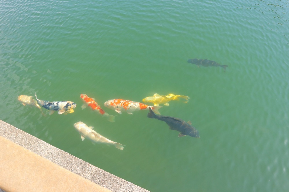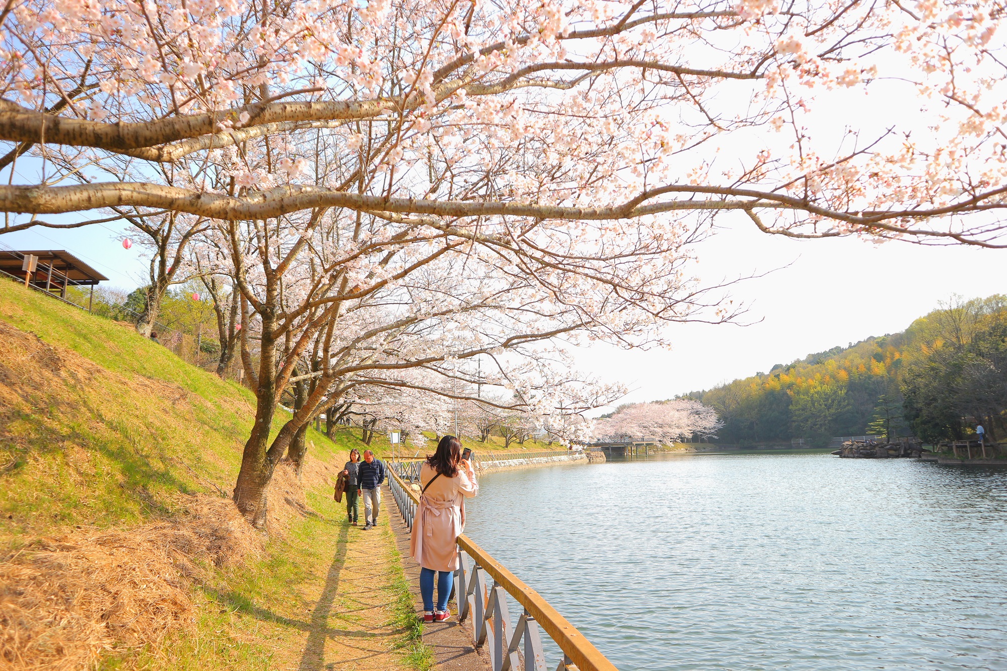 カラフルなコイ達が住む大きな池の周りが散策道になっています。桜の名所でもあり、春には多くの花見客でにぎわいます。ローラー滑り台などの遊具もあるので、子供も楽しめます。